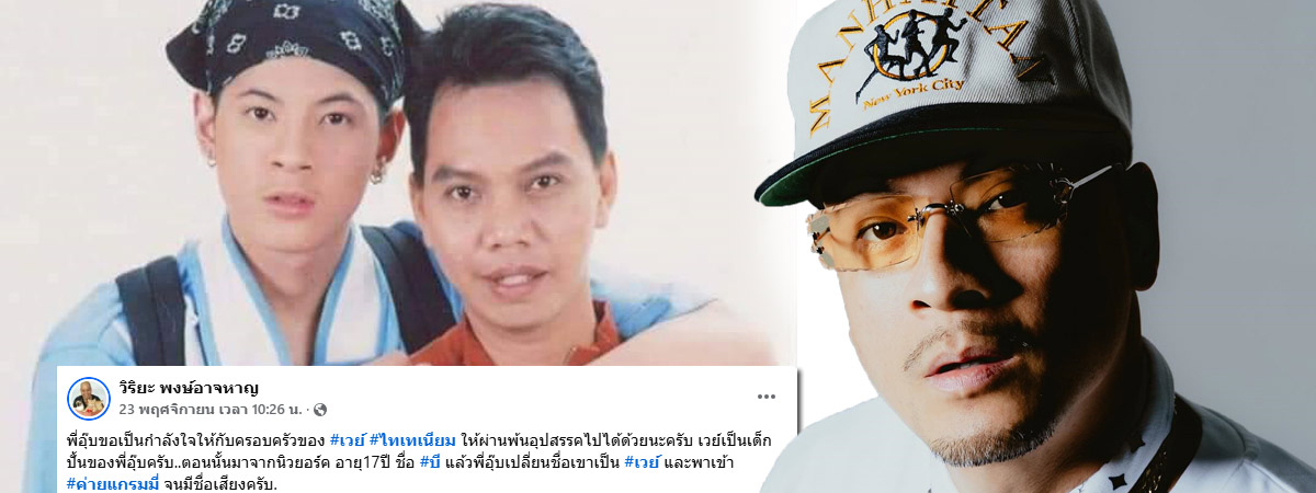 โดย อุ๊บ วิริยะ โพสต์ถึง เวย์ ไทยเทเนี่ยม ว่า "พี่อุ๊บขอเป็นกำลังใจให้กับครอบครัวของ #เวย์ #ไทเทเนียม ให้ผ่านพ้นอุปสรรคไปได้ด้วยนะครับ เวย์เป็นเด็กปั้นของพี่อุ๊บครับ..ตอนนั้นมาจากนิวยอร์ก อายุ 17 ปี ชื่อ #บี แล้วพี่อุ๊บเปลี่ยนชื่อเขาเป็น #เวย์ และพาเข้า #ค่ายแกรมมี่ จนมีชื่อเสียงครับ"