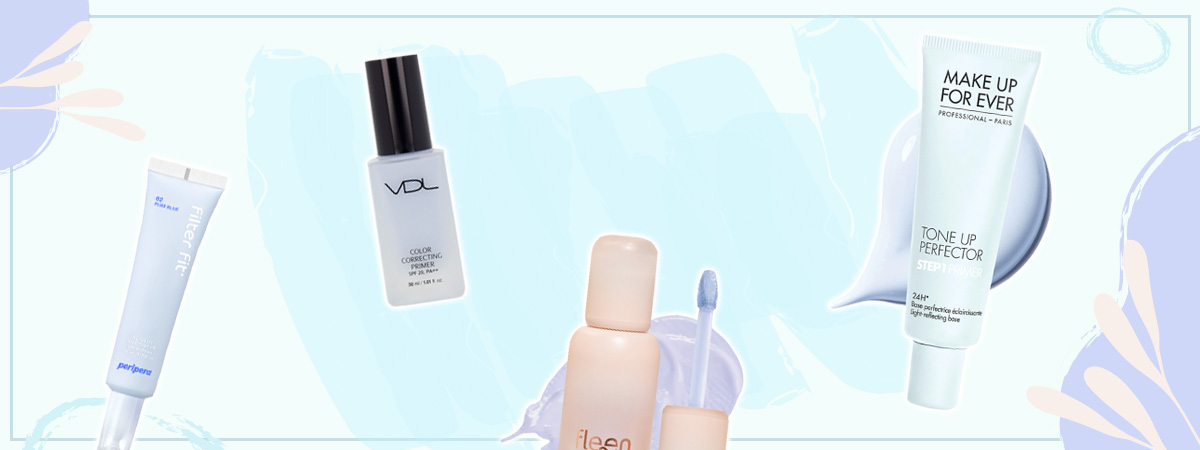 - หลักการ : สีฟ้าอยู่ตรงข้ามกับสีเหลืองบนวงล้อสี การทาเบสสีฟ้าอ่อน ๆ จะช่วย "หักล้าง" หรือ "ลดทอน" สีเหลืองส่วนเกินที่ทำให้ผิวดูซีดหรือหมองคล้ำได้