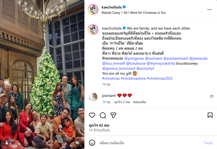 เป็นโมเมนต์อบอุ่นส่งท้ายปีเลยทีเดียว เมื่อล่าสุด (25 ธันวาคม 2568) เจนสุดา ปานโต ภรรยาของพอล สิริสันต์ และ เก๋ ชลลดา ภรรยาของพร้อม สิริสันต์ สองสะใภ้สาวสวยตระกูลดัง ได้ออกมาเผยภาพปาร์ตี้ฉลองวันคริสต์มาสของครอบครัว สิริสันต์