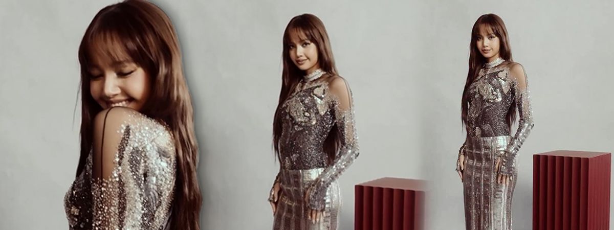 โดย ลิซ่า ปรากฏตัวในลุคสวยสง่า แอบเซ็กซี่เบา ๆ ในชุดเดรสสีเงินคัสตอมจากแบรนด์ Thom Browne ที่ประดับด้วยเหลื่อมและลูกปัดสีเทาหลายเฉดสี ส่งให้ชุดดูระยิบระยับ และยิ่งทำให้ ลิซ่า สวยออร่าโดดเด่นมากยิ่งขึ้น