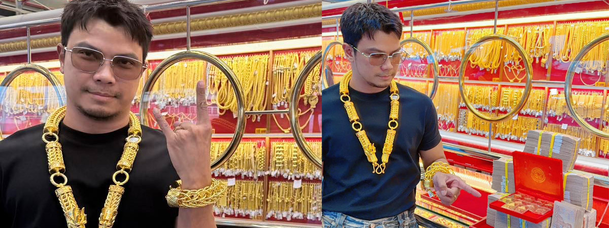โดย หนุ่ม กะลา ได้ออกมาเผยภาพใส่สร้อยทองเส้นใหญ่ทั้งที่คอ และข้อมือ อีกทั้งยังมีกองเงินหลายปึก ที่นำไปซื้อทองคำแท่งกว่า 100 บาท ซึ่งในเวลาที่ซื้อนั้นคาดว่าเจ้าตัวน่าจะทุ่มเงินเป็นจำนวนกว่า 8,150,000 บาท