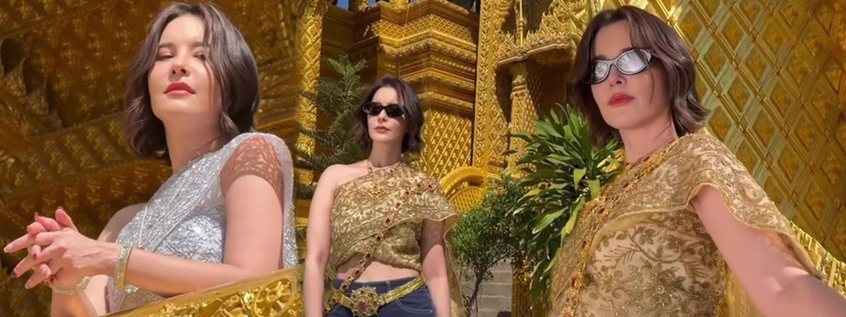 ล่าสุด (4 กุมภาพันธ์ 2569) ธัญญ่า ธัญญาเรศ พิธีกร-นักแสดงชื่อดัง ก็ไม่พลาดขอร่วมเทรนด์ฮิตกับเขาด้วย หลังเดินทางไปเที่ยวที่ วัดจันทร์ตะวันตก จ.พิษณุโลก โดยเจ้าตัวก็จัดเต็มถึง 2 ลุค กับลุคสไบสีครีมทองและขาวงาช้างปักเลื่อมสีทอง พร้อมด้วยเครื่องประดับสีทองและสีเงินที่ขับผิวให้ผ่องสวยออร่างามตา เรียกว่าสวยอลังการ เลอค่าทั้งคนทั้งวิวเลยทีเดียว