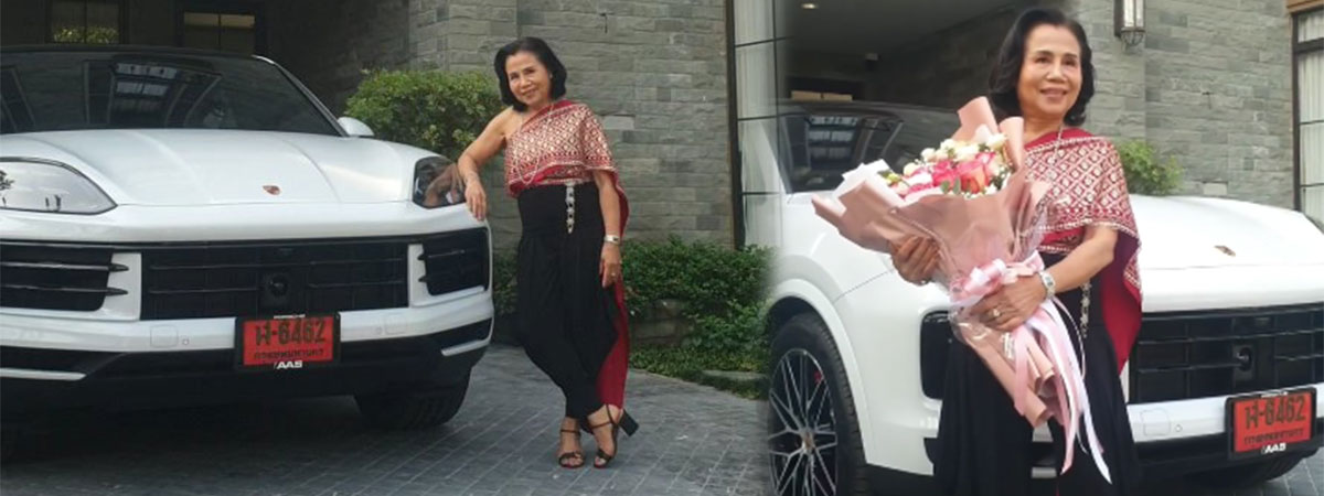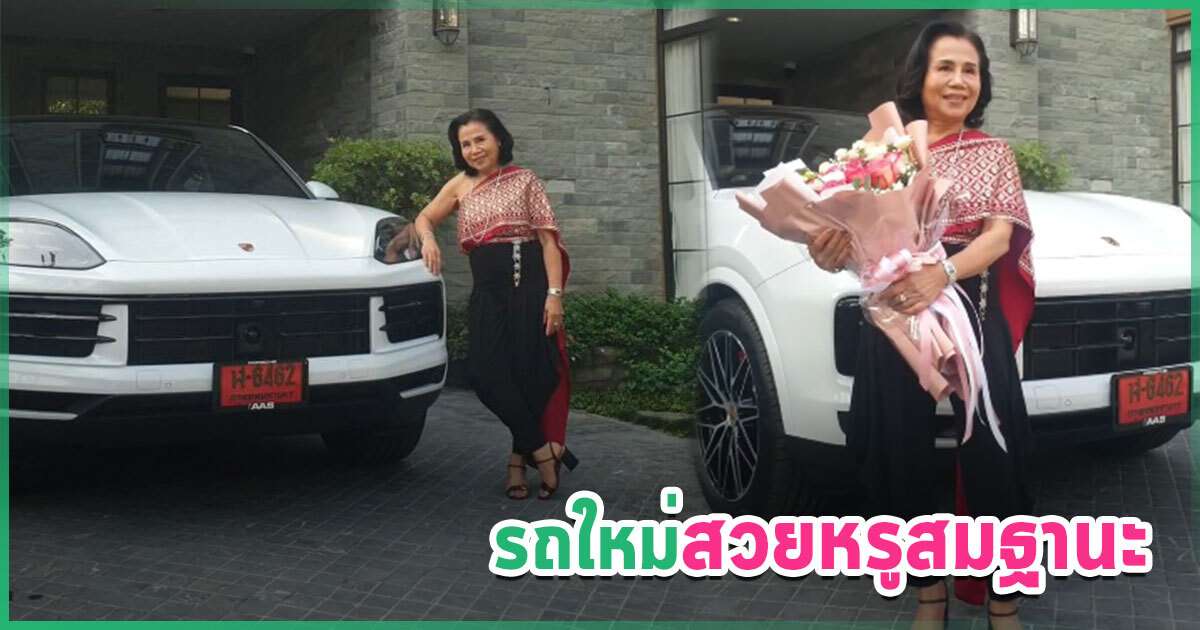 ยายหนิง แม่ชมพู่ อารยา อินเทรนด์ห่มสไบใส่ยีนส์ โพสท่าสวยสับ อวดรถหรูคันใหม่ Porsche คอหวยแห่ส่องป้ายทะเบียนป้ายแดงเลขสวย