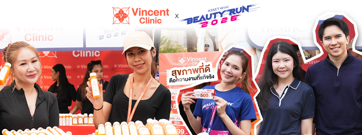 Vincent Clinic ร่วมเป็นส่วนหนึ่งของงาน “AssetWise BEAUTY RUN 2026” ซึ่งเป็นงานวิ่งระยะ 5 กิโลเมตร และ 10 กิโลเมตร ที่มีนักวิ่ง เซเลบ คนดัง และเหล่านางงามสายสุขภาพ เข้าร่วมงานอย่างคับคั่ง ถือว่าเป็นกิจกรรมต้อนรับปีใหม่ที่ช่วยกระตุ้นให้คนหันมาใส่ใจเรื่องของสุขภาพกันมากขึ้น สำหรับการเข้าร่วมงานครั้งนี้สะท้อนภาพลักษณ์ Lifestyle & Wellness ของวินเซนต์คลินิก ที่ยึดแนวคิด Longevity เน้นการดูแลสุขภาพแบบองค์รวม ทั้งร่างกายภายใน สุขภาพจิตใจ และผิวพรรณควบคู่กันไป ส่งเสริมให้มีคุณภาพชีวิตที่ดีในระยะยาว โดยในงานครั้งนี้วินเซนต์คลินิกได้ขนกิจกรรมสนุก ๆ มาให้ผู้ร่วมงานได้ลุ้นรางวัลและของที่ระลึกสุดพิเศษมากมาย เป็นหนึ่งในการช่วยผลักดันให้คนหันมาดูแลตัวเองให้มีสุขภาพที่ดีจากภายในสู่ภายนอก