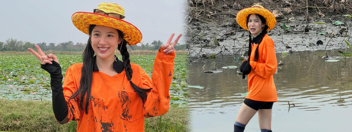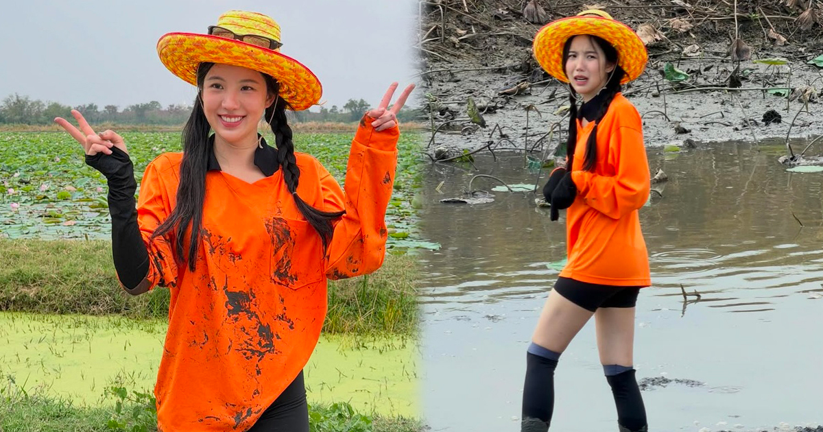 เจนิส เจณิสตา กับแฟชั่นชุดปุ๋ยสีส้ม ถ่ายรายการของเซียนหรั่ง พร้อมลงไปจับปลาในโคลน แค่เห็นเบื้องหลังแฟน ๆ ก็ขำและเอ็นดูแล้ว