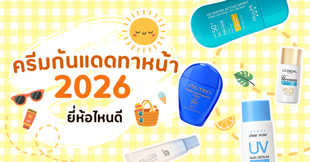 ครีมกันแดดทาหน้า 2026 ยี่ห้อไหนดี อัปเดต 9 ครีมกันแดดทาหน้า ที่ช่วยปกป้องผิวจากแสงแดด พร้อมทั้งบำรุงผิวในเวลาเดียวกัน มียี่ห้อไหนน่าสนใจบ้าง มาดูกันเลย