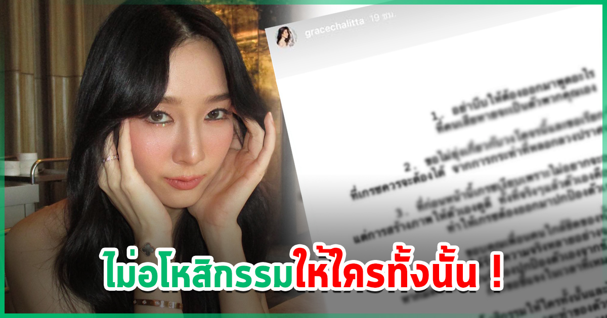 4. ขอบคุณเพื่อนคนใกล้ชิดของทั้ง3 ฝ่าย ที่ทำให้เกรซได้รับรู้ความจริงหลายอย่างจากเหตุการณ์ครั้งนี้ หากมีความจำเป็นที่ต้องปกป้องตัวเองจากข้อมูลที่ไม่เป็นความจริง ก็จะขอชี้แจงในเวลาที่เหมาะสม