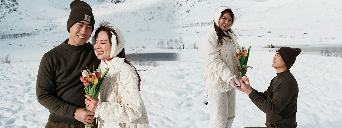 โดย ฮัท เดอะสตาร์ ได้โพสต์ภาพบนอินสตาแกรม เผยให้เห็นโมเมนต์สุดพิเศษ ทำเซอร์ไพรส์คุกเข่าขอแต่งงาน นิว แฟนสาว ในบรรยากาศสุดโรแมนติก ท่ามกลางภูเขาหิมะในนอร์เวย์ที่สวยงามราวกับเทพนิยาย ชวนให้อบอุ่นละมุนใจ แม้อยู่ท่ามกลางอากาศที่หนาวเหน็บ