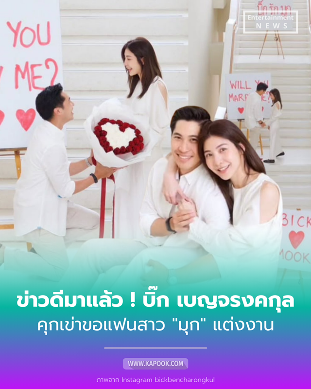 ทางด้าน มุก ว่าที่เจ้าสาวก็ได้โพสต์ข้อความด้วยความซาบซึ้งใจว่า "Thank you @bickbencharongkul for everything you’ve done na ka Through your eyes, your words, and your actions, you make me feel deeply loved, cared for, and truly understood. I’m sincerely grateful for everything that brought us together and allowed us to love each other so deeply From this day forward, may everything between us remain as beautiful and constant as it has always been. We will never let go of each other’s hand, and we will build our family together—today, tomorrow, and for all the days to come. Love you ka my love"