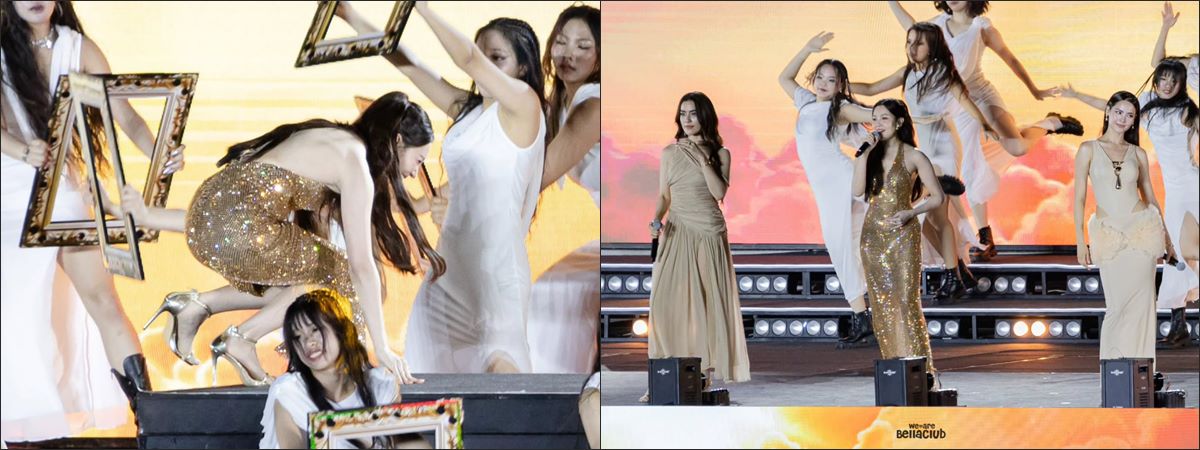 จังหวะนี้เลยทำให้ "คิมเบอร์ลี่" และ "เบลล่า" ที่อยู่ฝั่งซ้ายและขวาของเวที ต้องรีบปีนขึ้นไป ทั้งที่แต่งตัวด้วยชุดราตรียาว กับรองเท้าส้นสูง ทำให้มีความเสี่ยงที่จะเกิดอุบัติเหตุขึ้นได้ และอาจจะส่งผลให้ได้รับบาดเจ็บจากเหตุนี้