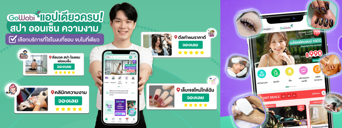 สุดท้ายแล้ว การดูแลตัวเองไม่ควรเป็นเรื่องยุ่งยากหรือรู้สึกว่าเข้าถึงยากเกินไป และนี่คือเหตุผลที่หลายคนเลือกใช้ โกวาบิ (GoWabi) เป็นตัวช่วยในชีวิตประจำวัน เพราะไม่ว่าจะอยากนวดใกล้ฉัน ดูแลผิวกับคลินิกเสริมความงามใกล้ฉัน หรือแช่ออนเซ็นใกล้ฉันเพื่อพักผ่อน แอปฯ เดียวก็เลือกได้ครบ แถมยังช่วยให้เปรียบเทียบราคา เลือกบริการที่ใช่ในงบที่ชอบได้ง่ายขึ้นอีกด้วย