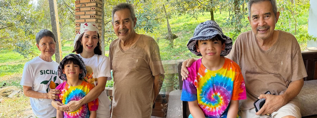 ภาพดังกล่าวเผยให้เห็นบรรยากาศอบอุ่นของครอบครัว ทั้งคุณตา คุณยาย และหลานชาย ท่ามกลางสวนทุเรียน สวนตาตุ่ม ในจังหวัดจันทบุรี ซึ่งรายล้อมไปด้วยต้นทุเรียนจำนวนมาก โดยผลผลิตน่ารับประทาน