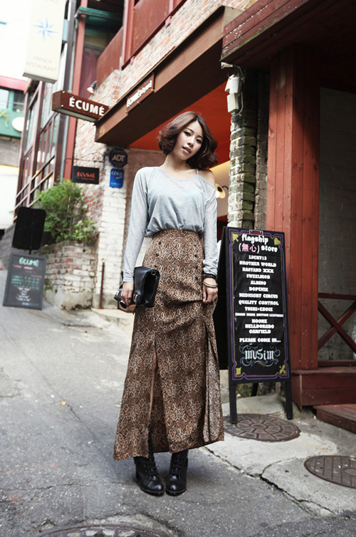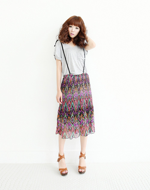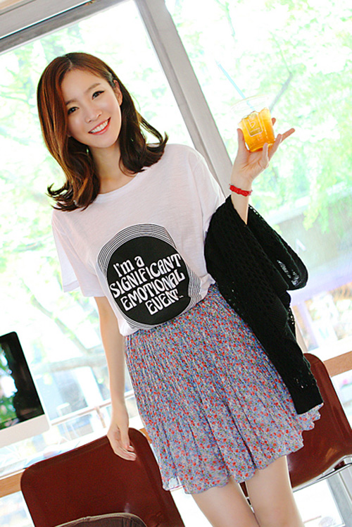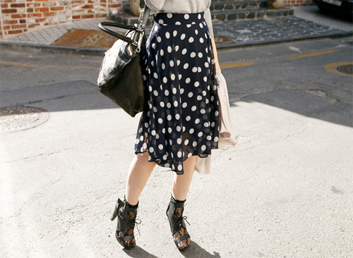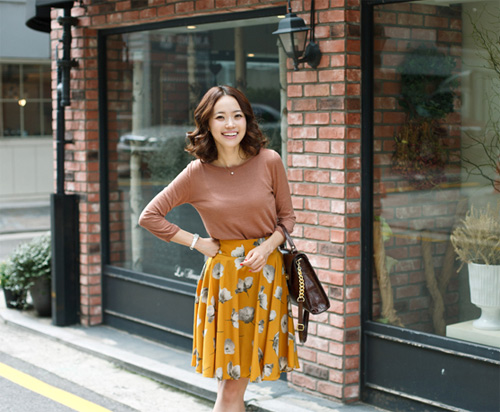 หนึ่ง แมตช์กระโปรงลายปรินต์กับเสื้อสีพื้น อาจจะเป็นสีเดียวหรือสีทูโทนก็ได้ที่สำคัญควรเป็นเสื้อพอดีตัว ไม่หลวมเกินไป