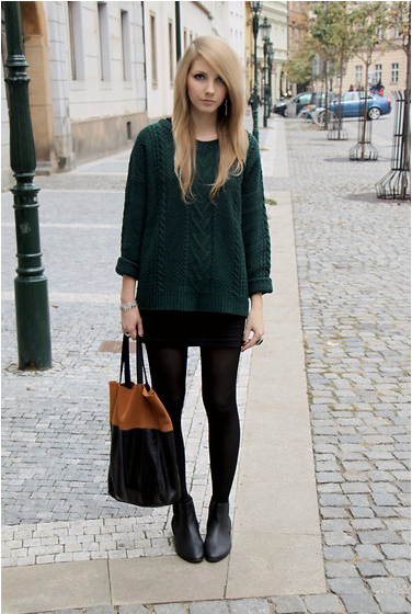 ปิดท้ายด้วยสาวคนนี้ที่แต่งเรียบ ๆ จำไปใส่ตามได้ง่าย ๆ ด้วยสเวตเตอร์ไหมพรมนุ่ม ๆ ตัวใหญ่ ปล่อยชายยาวทับกระโปรงเข้ารูปสีดำ และสวมสต็อกกิ้งอันเป็นไอเท็มที่ขาดไม่ได้สำหรับซีซั่นนี้ ตามด้วยบูทปิดข้อส้นเตี้ย แต่งตัวเรียบ ๆ แบบนี้มีหัวใจสำคัญอยู่ที่การเล่นลวดลายของเสื้อสเวตเตอร์นั่นเอง หรือจะหิ้วกระเป๋าสีที่เบรคกันอีกใบก็จะช่วยสร้างจุดสนใจให้กับลุคนี้ได้เป็นอย่างดี