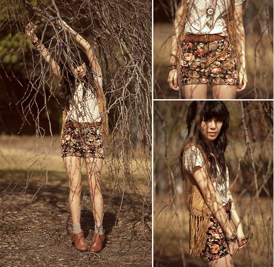 ในวันที่อากาศไม่เย็นนักเปลี่ยนจากชุดแขนยาว มาเป็นเสื้อแขนสั้นเนื้อหนาสีขาว ใส่คู่กับขาสั้นสีดำลายดอกที่ช่วยเติมความหวานได้เล็ก ๆ คลุมด้วยเสื้อกั๊กนิตติ้งที่ถักปล่อยชายไหมพรมพลิ้ว เพิ่มความอุ่นให้เท้าด้วยการสวมถุงเท้าก่อนจะใส่รองเท้าทรงออกซ์ฟอร์ดหนังสีน้ำตาล