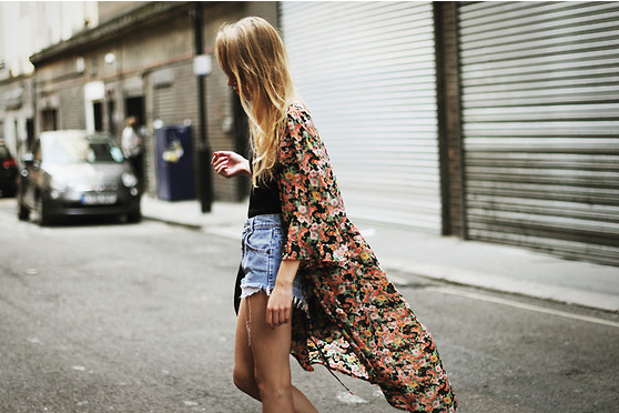 หากอากาศหนาวไม่มากและไม่อยากจะใส่โค้ทให้หนักตัว ลองแต่งตัวง่าย ๆ แบบสาวคนนี้ ในเสื้อยืดดำและยีนส์ขาสั้นแบบเซอร์ ๆ แล้วทับด้วยเสื้อคลุมตัวยาวสีดำลายดอก แม้ผ้าเนื้อไม่หนานักแต่ก็ช่วยคลุมผิวกายไม่ให้ต้องปะทะกับลมหนาวโดยตรง หรือหากเบื่อทีจะใส่จะตวัดขึ้นมาเป็นผ้าพันคอผืนโตก็ได้ ดูเก๋ไม่หยอกเลย