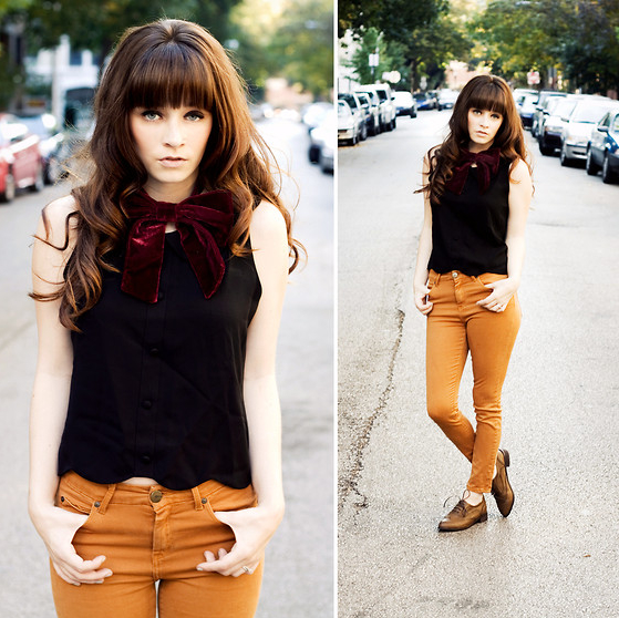 สาวรายนี้หลุดคอนเซ็ปต์รับลมหนาวไปสักนิด แต่ก็พออนุโลมได้ ลองดูโทนสีที่เธอหยิบมาใส่ นอกเหนือจากแขนกุดสีดำ ก็เป็นริบบิ้นกำมะหยี่สีแดงเบอร์กันดีที่นำมาผูกเป็นโบว์ไทที่คอ ขายาวสีส้มรวมทั้งรองเท้าสีน้ำตาล เป็นโทนสีที่ดูอบอุ่นเหมาะกับวันอากาศเย็นอยู่ไม่น้อย ใครจะจำไปใช้ลองเปลี่ยนแขนกุดเป็นสเวตเตอร์หรือเสื้อแขนยาวก็โอเคแล้ว