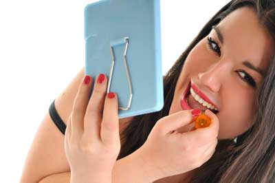 7 หากมีพวงแก้มกลม ให้ลงบลัชออนกลางพวงแก้มแล้วปัดเฉียงขึ้นไปยังบริเวณโหนกแก้ม แต่หากกลมกลึงเสียจนดูไม่ออก ลองยิ้มหน้ากระจกเพื่อมองหาตำแหน่ง เท่านี้ก็ดูเพรียวผอมไปเยอะ