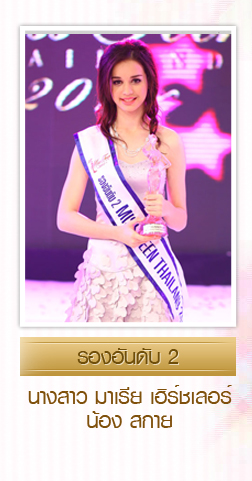 7. มิสบลู คอร์เนอร์ ได้แก่ นางสาวมาเรีย เฮิร์ชเลอร์ หรือ น้องสกาย อายุ 16 ปี จากโรงเรียนอัสสัมชัญอุบลราชธานี จ.อุบลราชธานี