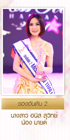 4.มิส แพน คลินิค ได้แก่ นางสาวอนิส สุวิทย์ หรือ น้องมายด์ อายุ 16 ปี จากโรงเรียนหาดใหญ่วิทยาลัย-สมบูรณ์กุลกัลยา