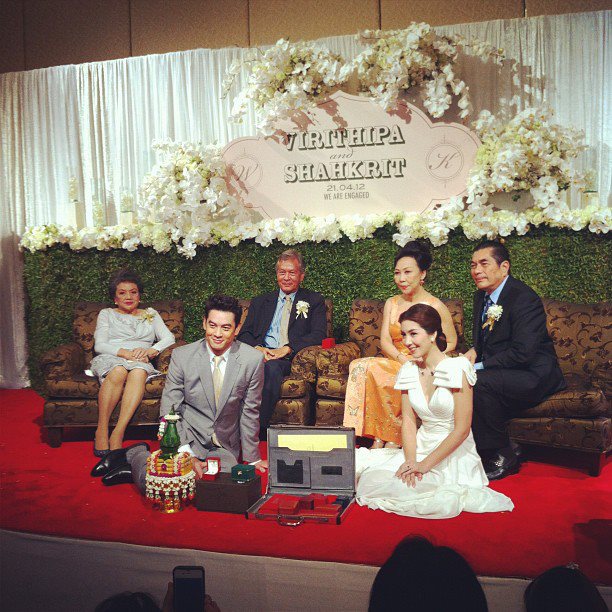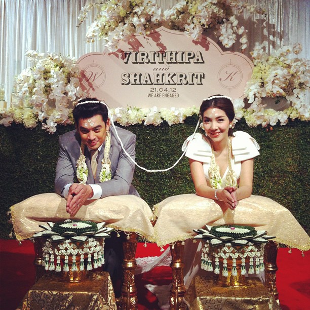 ฉลองวิวาห์สุดชื่นมื่น! สำหรับคู่รักดาราพระเอกสุดฮอต ชาคริต แย้มนาม และดาราสาว วุ้นเส้น วิริฒิพา ณ ห้องคริสตัล โรงแรมพลาซ่า แอทธินี เมื่อค่ำวันที่ 21 เมษายน 2555 หลังเข้าพิธีมงคลสมรส พร้อมจดทะเบียนสมรสเป็นที่เรียบร้อยแล้วในช่วงเช้า