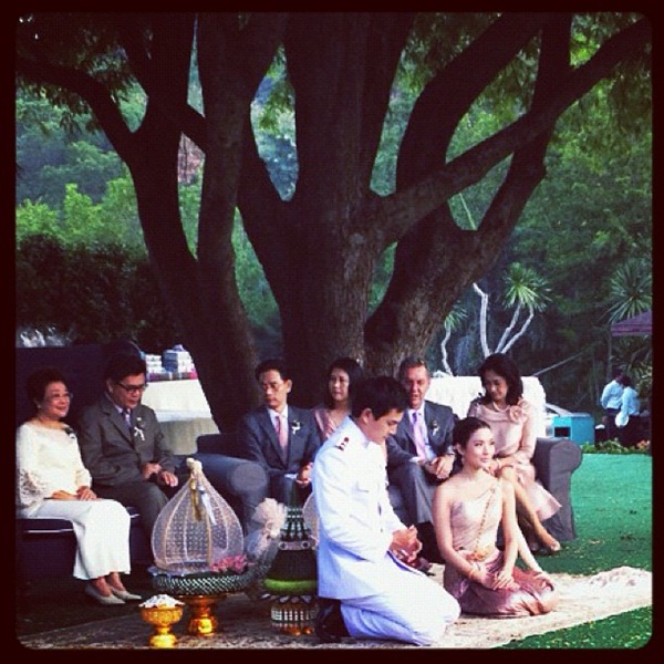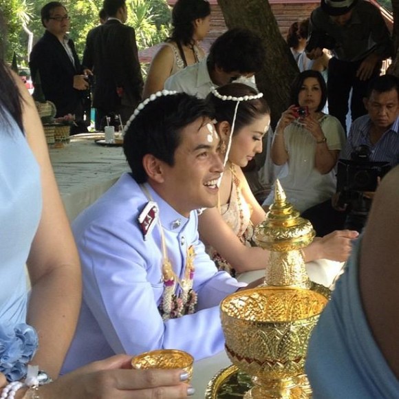 ทั้งนี้ ในพิธีหมั้นและรดน้ำสังข์ดังกล่าว ไม่อนุญาตให้สื่อมวลชนไปทำข่าว มีเพียงเพื่อนสนิทและญาติของทั้งสองฝ่ายร่วมเป็นสักขีพยานเท่านั้น โดยทั้งคู่มีการเชิญแขกคนอื่น ๆ พร้อมนักข่าว และจัดพิธีเลี้ยงฉลองมงคลสมรสอย่างยิ่งใหญ่อีกครั้งในวันที่ 4 พฤษภาคม 2555 ที่โรงแรมแมนดาริน โอเรียนเต็ล กรุงเทพมหานคร