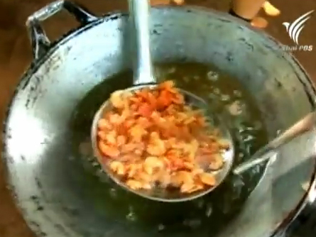 4. ตั้งกระทะให้ไฟร้อน แล้วนำของแห้งลงไปทอดทีละอย่าง เริ่มจากกระเพาะปลา ต่อด้วยกุ้งแห้ง ปลาจิ้งจั้ง และปิดท้ายด้วยปลาหมึกแห้ง โดยทอดให้ออกมากรอบน่ารับประทาน