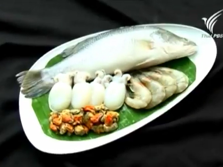 3. รองจานด้วยขึ้นฉ่าย และ นำอาหารทะเลที่ลวกแล้วลงมาวางเรียงใส่จานให้สวยงาม ราดด้วยน้ำจิ้มรสเด็ด เท่านี้ก็จะได้เมนูซีฟู้ดที่ทางรายการการันตีว่า จะน่ากินจนพูดไม่ออกเลยทีเดียว