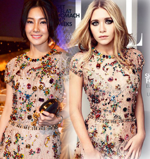 ก็แหม..ก็จะไม่หรู! แพง! ได้อย่างไรกันล่ะ เพราะชุดนี้คุณนายนุ่นสั่งตรงมาจากช็อปแบรนด์ Dolce & Gabbana เป็นคอลเลกชั่นล่าสุดจากรันเวย์เลยทีเดียว แถมยังเคยขึ้นปกนิตยสาร ELLE มาแล้ว ยิ่งถือกับคลัทช์เก๋ ๆ แบรนด์ดังของ Alexander McQueen ด้วยแล้ว... โอ้ว!!! เริ่ดสุด ๆ ไม่รู้ว่าราคาเหยียบล้านจริงอย่างข่าวลือเล่าอ้างหรือเปล่า แต่ที่แน่ ๆ ชุดนี้ก็สวยเจิดจริง ๆ