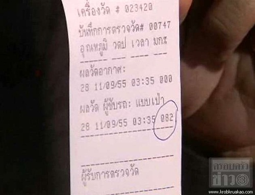 อย่างไรก็ตาม จนกระทั่งเวลา 03.30 น. เจ้าตัวจึงยอมเป่าวัดระดับแอลกอฮอล์ ผลปรากฏพบว่า มีปริมาณแอลกอฮอล์ในเลือด สูงถึง 82 มิลลิกรัมเปอร์เซ็นต์ เจ้าหน้าที่จึงได้แจ้งข้อหาเมาแล้วขับ ก่อนถูกควบคุมตัวไปยัง สน.คลองตัน เพื่อดำเนินคดีตามกฎหมายต่อไป