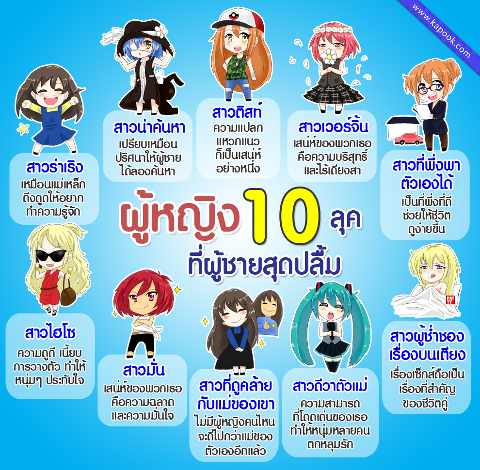 รู้ไหมว่าหนุ่ม ๆ ไม่ได้มองสาว ๆ ที่รูปร่างและหน้าตาอย่างเดียวนะจ๊ะ เพราะเปลือกกายภายนอกเขามองเอาไว้เป็นอาหารตาเท่านั้นแหละ แต่ถ้าจะให้เขาเลือกจริง ๆ เขาก็ต้องเลือกผู้หญิงที่มีดีมากกว่าหน้าตาทั้งนั้น ซึ่งผู้หญิงแบบไหนที่จะทำให้เขาสะดุดตาและสะดุดใจได้บ้างนั้น วันนี้กระปุกดอทคอมก็มีสาวในสเปคจากคำบอกเล่าของหนุ่ม ๆ มาฝากกัน