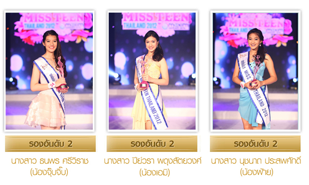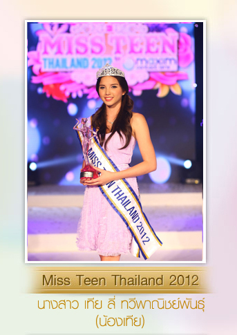 ประกาศผลเป็นที่เรียบร้อยแล้ว.. สำหรับผลการประกวด "มิสทีนไทยแลนด์ 2012" (Miss Teen Thailand 2012) เวทีของสาววัยใสอายุระหว่าง 15-18 ในคอนเซ็ปต์ "สาวงามที่น่ารัก สดใส เปรียบดั่งดอกไม้ที่เริ่มเบ่งบาน" ณ ห้องบางกอกคอนเวนชั่นเซ็นเตอร์ ศูนย์การค้าเซ็นทรัลพลาซา ลาดพร้าว เมื่อวันที่ 26 ตุลาคม ที่ผ่านมา