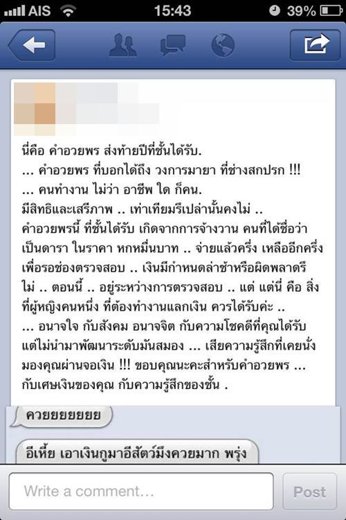 กลายเป็นดราม่าซะแล้ว เมื่อมีผู้หญิงคนหนึ่ง โพสต์ภาพการสนทนาของ อู๊ด เป็นต่อ นักแสดงตลกชื่อดัง ที่เป็นบทสนทนาของอู๊ดตอนที่ทวงเงินฝ่ายหญิง และใช้สรรพนามเรียกผู้หญิงเป็นสัตว์ชนิดหนึ่ง จนเธอเองทนไม่ได้ ต้องมาระบายความในใจผ่านเฟซบุ๊ก