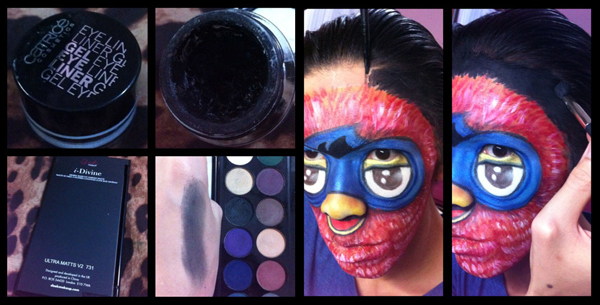 รู้สึกว่ายังไม่พอ ใช้อายแชโดว์สีน้ำเงินเข้ม ซ้อนกรอบตาให้เฟอร์บี้ ดูมีตาลึก ๆ เข้าไปอีกชั้นกับอายแชโดว์สีม่วงเข้มบริเวณกรอบขน ให้ดูขนลึก ๆ ลงไป