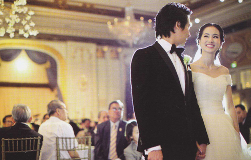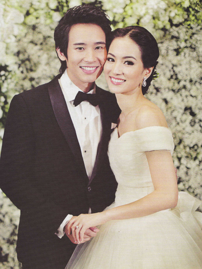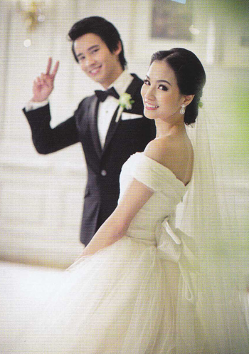 ทิม : คิดว่าไม่มีธีมเป็นตัวเป็นตนเท่าไหร่ คือ 1. เรียบง่าย 2. ได้อยู่กับคนที่สำคัญที่เรารักจริง ๆ อย่างเมื่อวันที่ 5-5-55 ที่โรงแรมสุโขทัย ก็จะเป็นโจทย์ตามประเพณีไทย แล้วก็มีแขกมาร่วมงานทั้งหมด 70 คน ต่ายก็จะใส่ชุดไทยแล้วก็มีการจดทะเบียน มีไหว้ผู้ใหญ่รดน้ำสังข์ และส่งตัววันที่ 6 เดือน 5 ส่วนวันที่ 12-12-12 ที่ผ่านมาจัดที่โรงแรมแมนดาริน โอเรียนเต็ล กรุงเทพฯ มีแขกทั้งหมด 370 ก็จะเป็น Sit down Dinner ธีมก็ไม่ได้ตายตัวอะไร คือเอาสิ่งที่เราชอบ ๆ มารวมกันมาอยู่ในงาน รวมถึงแขกผู้มีเกียรติและผู้คนที่เราเคารพรักและคิดถึงตั้งแต่เด็กจนโตมารวมอยู่ด้วยกัน ไม่เคยคิดที่จะมีงานแต่งงานที่ใหญ่โตหรือเพอร์เฟคท์ แต่อยากให้งานออกมาดูอบอุ่น