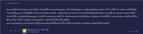 ส่วนทางด้านบริษัท Big Step Event ที่รับหน้าที่จัดงานในครั้งนี้ ก็ได้ออกมาขอโทษอย่างเป็นทางการ ผ่านเว็บไซต์ พันทิปดอทคอม ว่า ทางบริษัทขออภัยต่อเหตุการณ์ที่เกิดขึ้น และเพราะบริษัทมีความรู้เท่าไม่ถึงการณ์ จึงเกิดเหตุจลาจลดังกล่าว ทางบริษัท จึงขอยอมรับผิดแต่เพียงผู้เดียว