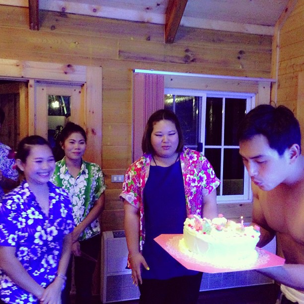 โดยงานนี้นอกจากจะฉลองวันเกิดร่วมกับครอบครัวแล้ว พนักงานโบนันซ่ายังได้นำเค้กมาเซอร์ไพรส์วันเกิดให้เจ้านายหนุ่ม สงกรานต์ ด้วย ด้านสาว แอฟ ถึงแม้จะไม่ได้เฉลยว่ามีของขวัญอะไรให้สามี แต่ก็ได้โพสต์ภาพการ์ตูนขำ ๆ ในช่วงสงกรานต์ เป็นภาพของ แอฟ พร้อมข้อความว่า "ข้อห้ามสงกรานต์ มีข้อดียว คือ ห้ามนอกใจแอฟ" ซึ่งเจ้าตัวบอกว่า ใครทำไม่รู้ รู้แต่ว่าถูกใจมาก ทำเอาแฟน ๆ ตามมากดไลค์กันให้เพียบเลยล่ะ