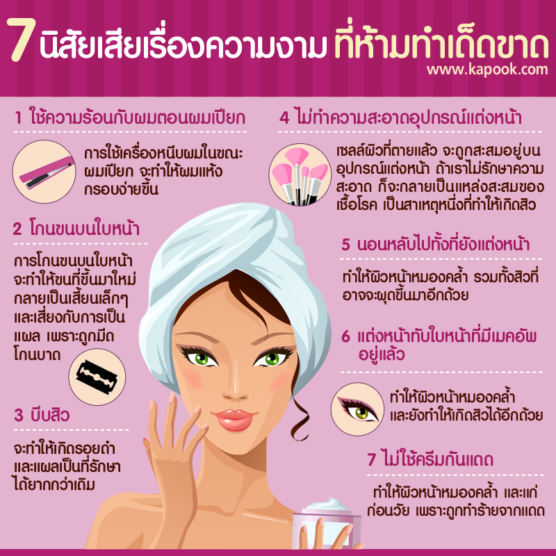 เรื่องสวยไม่ใช่เรื่องง่ายสำหรับผู้หญิงเสมอไป เพราะบางครั้งเราก็ต้องเสียเวลาประดิษฐ์ประดอยกับมันอยู่เป็นนานสองนาน พอเป็นอย่างนี้แล้วก็เลยอยากจะหาทางลัดให้สวยเร็วสวยไวแต่เป๊ะทันใจที่ตามต้องการ แต่วิธีบางอย่างก็ไม่ใช่วิธีที่ถูกเสมอ และนี่เป็น 7 วิธีสวยทางลัด ที่ขอหยิบยกมาย้ำกันให้ชัด ๆ ว่าอย่าทำ เพราะมันไม่เวิร์คเลยจริง ๆ จ้า