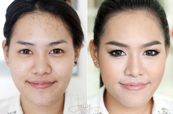 ซ้าย : ภาพก่อนแต่งหน้า
