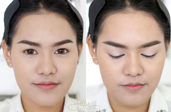 เก็บรายละเอียดที่หัวตาอีกครั้งด้วยอายแชโดว์สีขาว เสร็จแล้วค่ะ