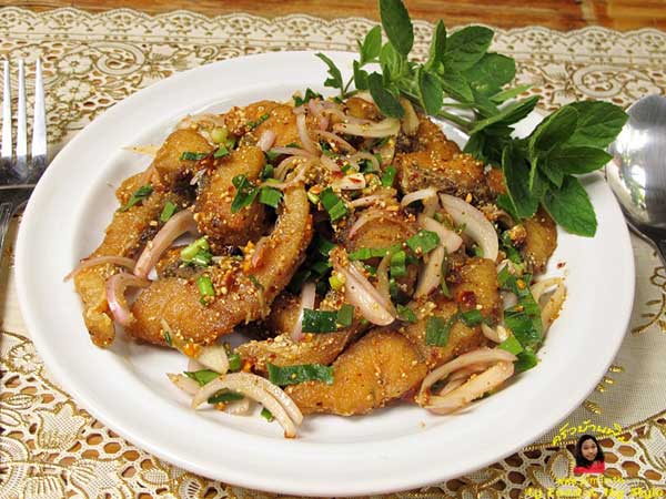 ลาบปลากะพงทอดกรอบ by ครัวบ้านพิม