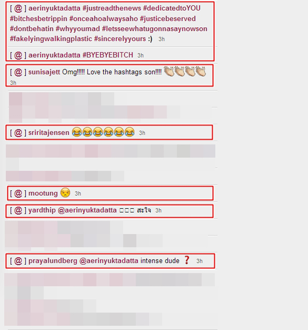 กลายเป็นประเด็นฮือฮาเมื่อจู่ ๆ นางร้ายสุดแซ่บ แอริน ยุกตะทัต โพสต์ภาพลงอินสตาแกรมเป็นข้อความภาษาอังกฤษแรง ๆ เหมือนจะด่าผู้หญิงบางคน อาทิ "ถ้าการโกหกคืองานอย่างหนึ่ง ฉันรู้จักคนที่กำลังจะเป็นมหาเศรษฐี" และ "ผู้หญิงบางคนอาจจะนอนกับสามี แฟน หรือแฟนเก่าของเรา แต่ก็ยังมาถามว่าเราใช้ลิปสติกอะไรได้หน้าตาเฉย" ทำให้หลายคนเชื่อว่า แอริน จงใจโพสต์แขวะนางเอกสาว เจนี่ เทียนโพธิ์สุวรรณ ที่กำลังตกเป็นประเด็นอื้อฉาวกับ เอ๋ ชนม์สวัสดิ์ อัศวเหม สามีของ ตู่ นันทิดา เนื่องจาก แอริน เจนี่ เคยเขม่นกันมาก่อนจากเรื่อง หมูตั้ง ม.ล.อรรถดิศ ดิศกุล แฟนเก่าของแอรินนั่นเอง