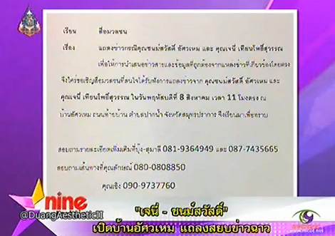 เอ๋ ชนม์สวัสดิ์ โชว์ผลตรวจจากโรงพยาบาล ยืนยัน เจนี่ ไม่ได้ตั้งท้อง @ เฟซบุ๊ก NineEntertain