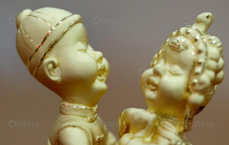 "ทางออกสำหรับคู่รักยุค 2009 - 2010  หากยังคงต้องการใช้ทองคำเป็นสัญลักษณ์ของงานมงคลสมรส ก็อาจใช้ "ตุ๊กตามงคล" รูปหล่อผงทองคำ ซึ่งเป็นงานอิเล็กทรอนิกส์ฟอร์มมิ่ง แทนการซื้อสร้อยคอ สร้อยข้อมือ หรือต่างหูเป็นเซต ซึ่งขณะนี้ก็เริ่มได้รับความนิยมมากขึ้น โดยมีลูกค้ามากกว่า 10% ของคู่แต่งงานหันมาใช้ตุ๊กตามงคลกันบ้างแล้ว"