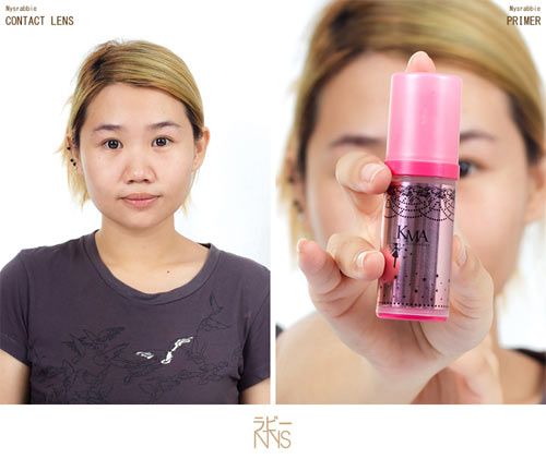 ให้หน้าลื่นพร้อมจะลงทุกสิ่งด้วยนิ้วนางข้างขวา และ KMA: Fairy Satin Touch Primer