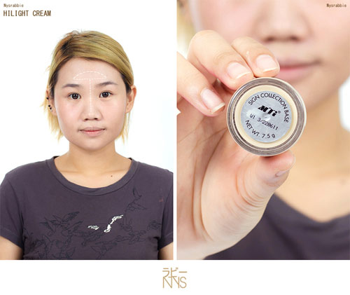 ใช้ MTI: Sign Collection Base สีขาว :W1 ลงบริเวณสันดั้ง และหน้าผาก