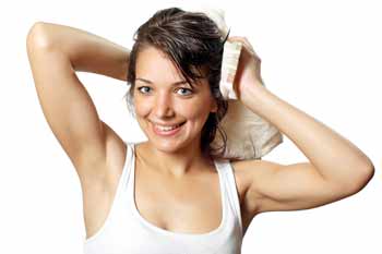 เทคนิคที่ 5 ซับผมเบาๆ : อย่าใช้ผ้าขนหนูเช็ดผมแรงๆ เพราะผ้าขนหนูจะโขมยความชุ่มชื้นและทำลายความยืดหยุนของผม ให้ใช้ปลายนิ้วบีบน้ำบนเส้นผมออก แล้วใช้ผ้าขนหนูซับเบาๆ และปล่อยให้ผมแห้งตามธรรมชาติ วิธีนี้จะช่วยเก็บกักความชุ่มชื้นบนเส้นผมไว้ได้นาน
