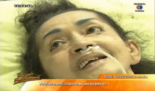 โดยรายการเรื่องเล่าเสาร์อาทิตย์ (4 มกราคม 2557) ได้เข้าเยี่ยมอาการของแม่ทุม พร้อมสวัสดีปีใหม่พ่อรอง เค้ามูลคดี ซึ่งพ่อรองก็ได้เผยถึงอาการล่าสุดให้ฟังว่า.. ระบบประสาทของแม่ทุมล้มเหลว ซึ่งระบบประสาทก็เหมือนโรงไฟฟ้าที่ต้องจ่ายไฟไปยังส่วนต่าง ๆ ของร่างกาย ตอนนี้ไฟก็ส่งได้น้อย ส่วนตัวระบบเองก็ค่อย ๆ ดับลงทีละดวง ๆ จนในที่สุดก็จะดับหมดทุกดวง และตอนนี้ชื่อโรคก็ยังไม่มีเรียกเป็นภาษาไทย อีกทั้งอาการดังกล่าวยังเกิดแค่ 1 ในล้านคน ยารักษาต้องสั่งจากต่างประเทศเข้ามาเท่านั้น และก็ไม่สามารถช่วยได้ร้อยเปอร์เซ็นต์