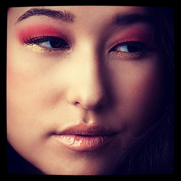 ลุคนี้เรียกได้ว่าช่วยเปลี่ยนตาหมวยให้กลายเป็นตาสวยเริดถึงขีดสุด ด้วยการใช้อายแชโดว์สีแดงและสีทอง (สีมงคลสำหรับวันตรุษจีน) มาผสานสีตกแต่งเปลือกตาบนและล่าง โดยเกลี่ยด้านบนให้ดูฟุ้งกระจายให้สักหน่อย จากนั้นจึงปัดมาสคาร่า ส่วนปากเลือกใช้ลิปสติกสีนู้ดทองลงไปให้ทั่วริมฝีปาก บอกได้คำเดียวว่าเจิดสุด ๆ จ้า