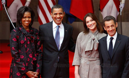 อีกอย่างก็เสี่ยงเกินไปที่จะประชันโฉมกับเมียผู้นำโลกคราวเดียวถึง 16 คน หนีไปตั้งหลักรอดูสถานการณ์จนมั่นใจได้ว่ารับมือไหว จึงตกปาก รับคำทำหน้าที่เจ้าบ้าน ช่วยสามีต้อนรับประธานาธิบดี บารัค โอบามา กับศรีภริยา ที่เดินสายต่อจากอังกฤษมาเยือนเมืองสตาร์สบูร์ก ทางตะวันออกของฝรั่งเศส (ติดกับเยอรมนี) เมื่อวันที่ 3 เม.ย.ที่ผ่านมา ก่อนจะเดินทางไปสมทบกับผู้นำจากทั่วโลก เพื่อร่วมประชุมสุดยอดผู้นำนาโต ซึ่งฝรั่งเศส และเยอรมนีเป็นเจ้าภาพร่วม ตั้งแต่มีข่าวว่าสองนางสิงห์จะเจอกัน สื่อทั่วโลกก็พร้อมใจประโคมข่าวว่า ในที่สุด "มิเชล โอบามา" กับ "คาร์ลา บรูนี" ก็ได้ประชันกัน